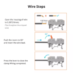Compatível com fios sólidos de 0,2 a 4,0 mm² (24–12 AWG) e fios flexíveis de 0,2 a 2,5 mm² (24–14 AWG)